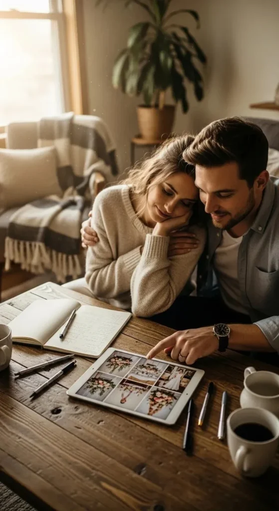 Have an honest conversation with your partner. Talk about savings, possible family contributions, and what you both feel comfortable spending. Avoid guessing or hoping extra money will appear later.