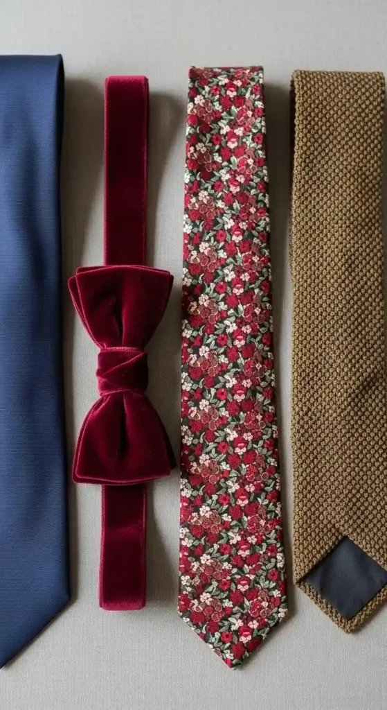 This is where personality really starts to show. Tie or bow tie—it’s not just a choice, it’s a statement.