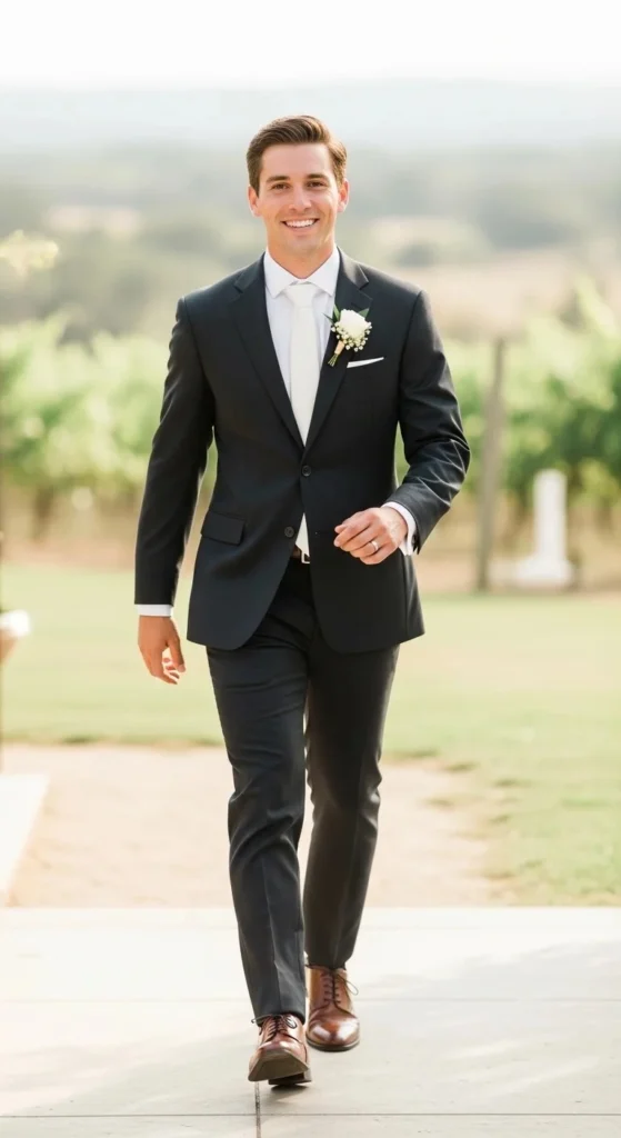 For a slightly modern twist, consider loafers or suede shoes—especially for outdoor weddings.