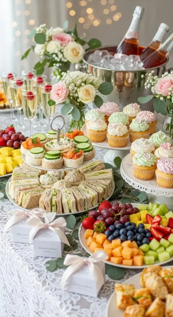 Bridal shower food should be delicious, pretty, and easy to eat. Think finger foods and small portions that don’t interrupt conversation.
