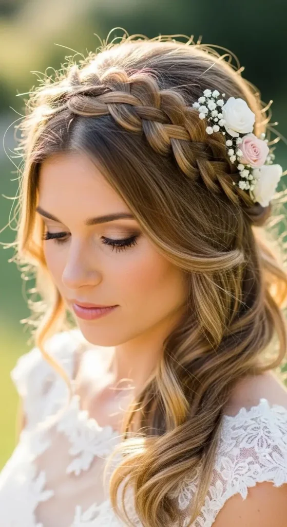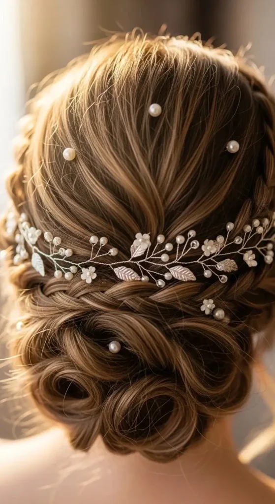 Style tip: Add small floral pins or pearls for a bridal finish.