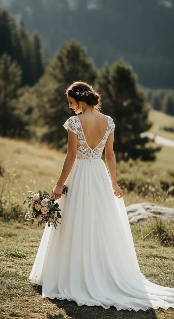 This dress works well for garden weddings or small indoor events. It’s easy to walk in. Easy to dance in. And easy to love.