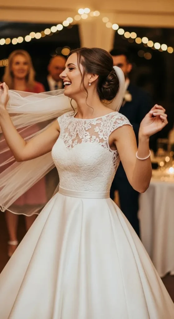 - Cap sleeves or long lace sleeves: Perfect for retro charm