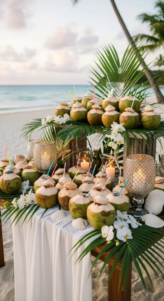 Perfect for summer weddings. Serve fresh coconuts or bottled coconut water.
