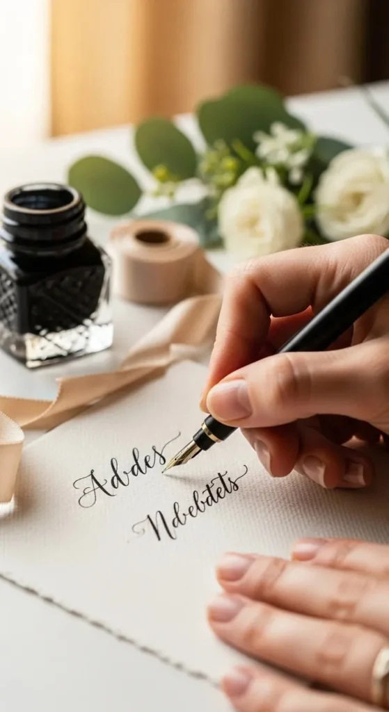 DIY couples can practice calligraphy using online templates. Even simple neat handwriting works well.