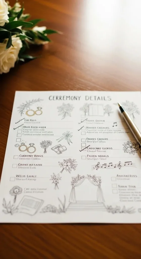 Think through music, seating, and readings. Keep it simple. Share plans with the officiant early. Practice once if possible. Short ceremonies hold attention better.