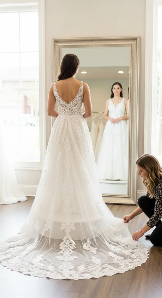 Set a dress budget before stepping into any store. Bring one or two trusted people. Sample sales and rental shops save money. Online brands offer stylish options too. Alterations matter more than labels. Comfort matters. You will wear it for hours. Simple designs age better in photos.