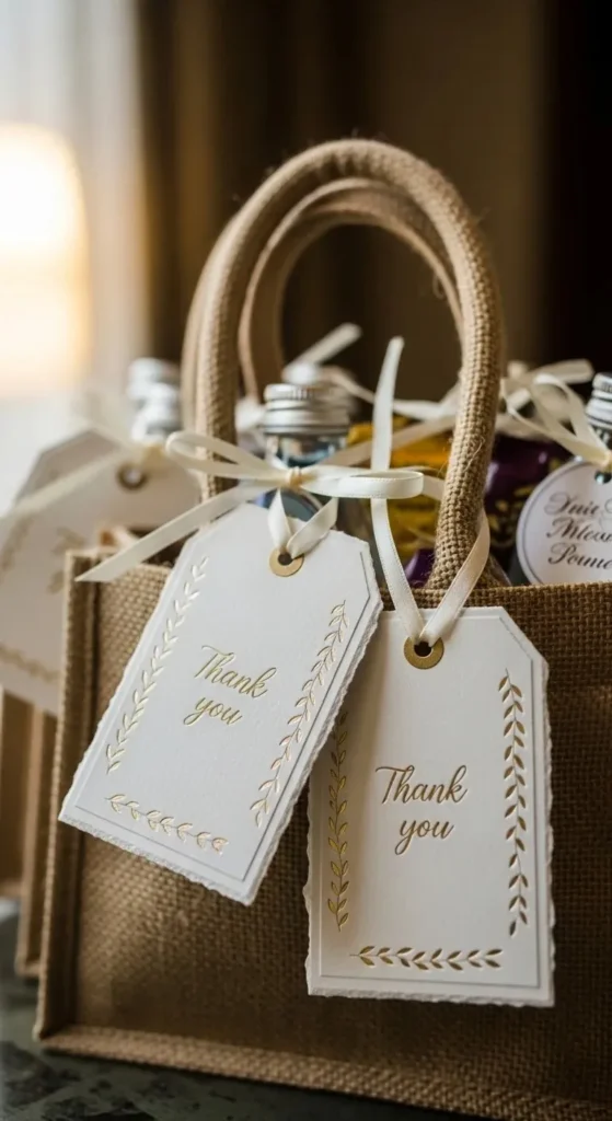 If printing costs are high, try DIY tags tied to the handles. This keeps it personal without extra expense.